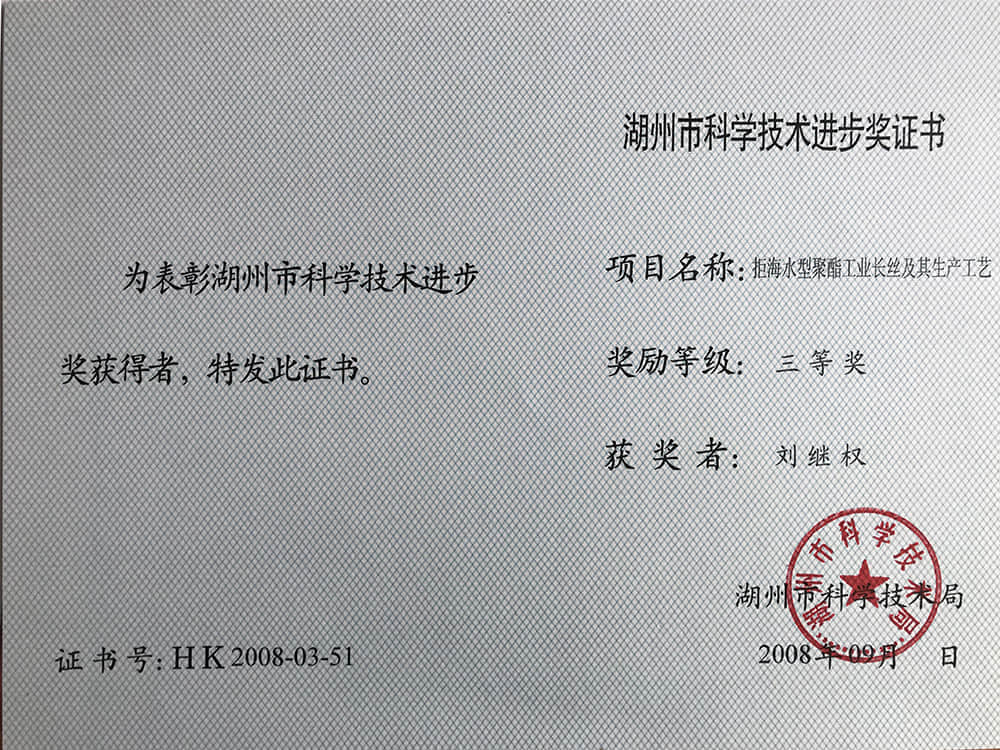 2008湖州市科技進步獎三等獎-劉繼權(quán)