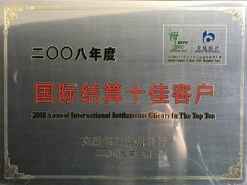 2008年度國際結算十佳客戶(交行)