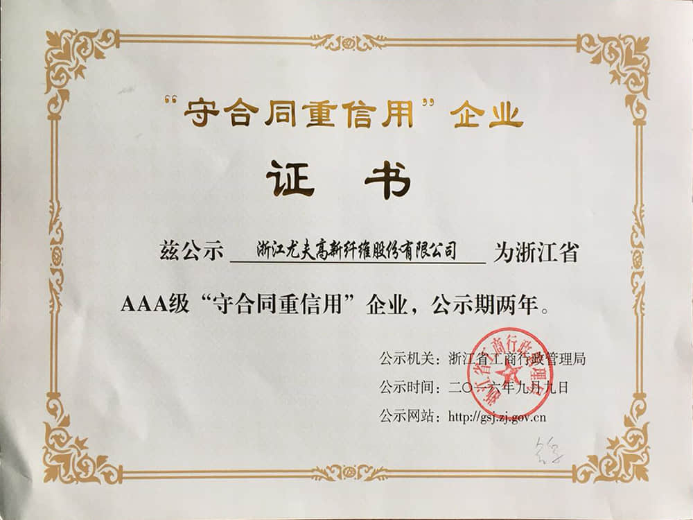 • 2013浙江省工商企業信用AAA級守合同重信用企業