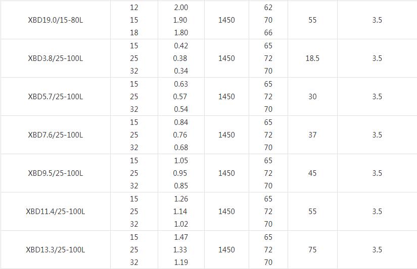 XBD5.7/25-100L XBD–消防泵組代號