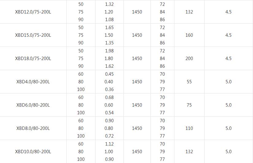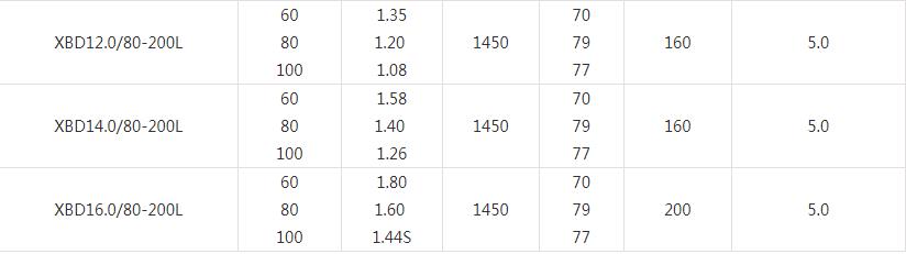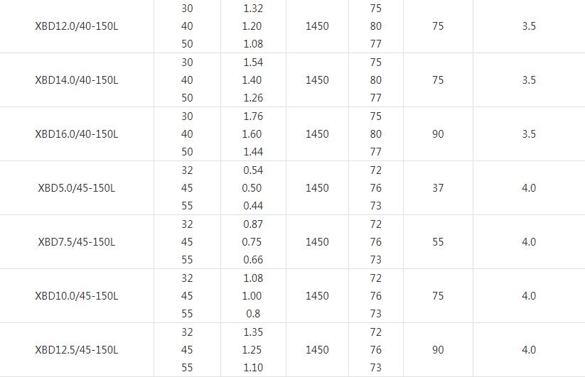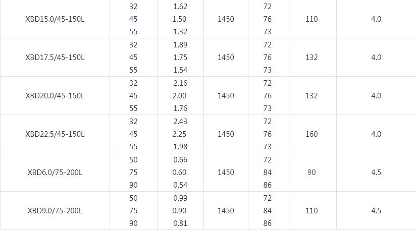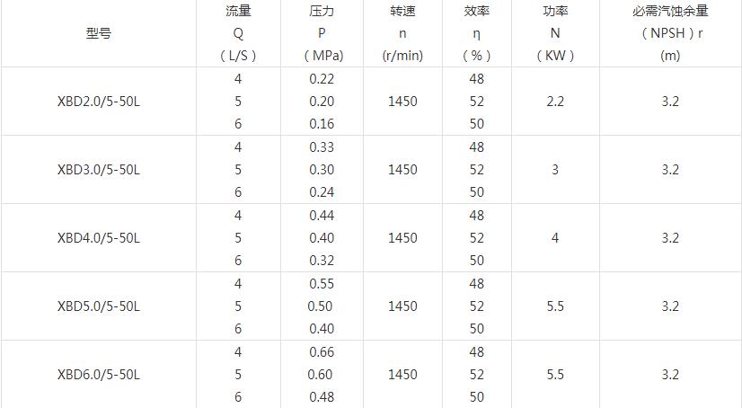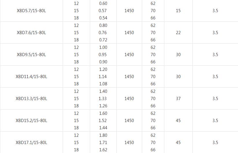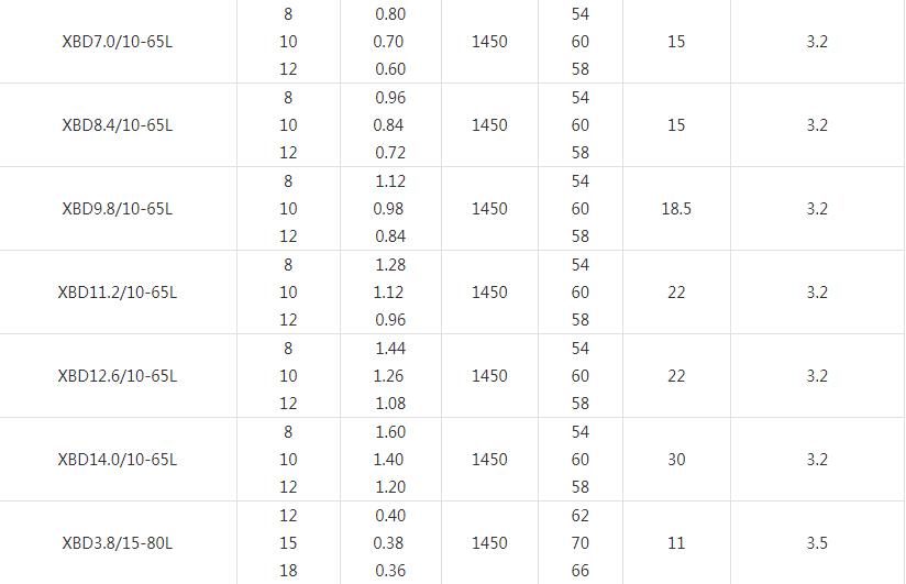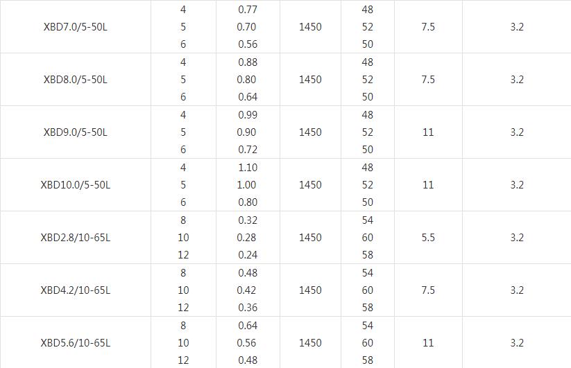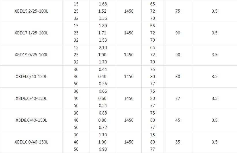 XBD-L(I)型立式多級消防泵技術參數