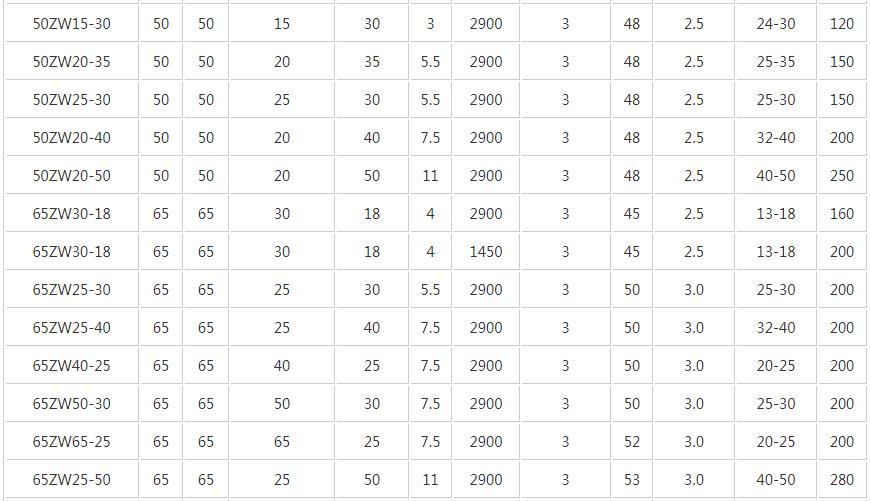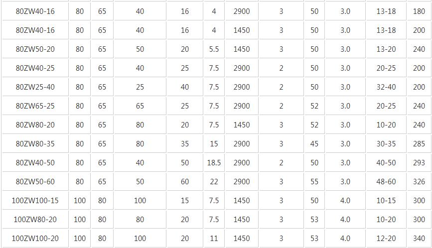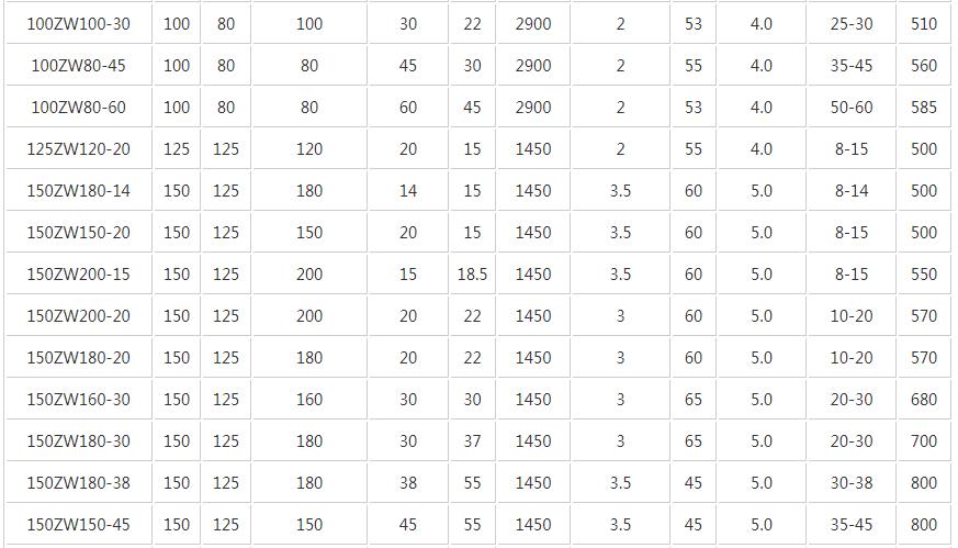 ZW自吸式無堵塞排污泵技術(shù)參數(shù):